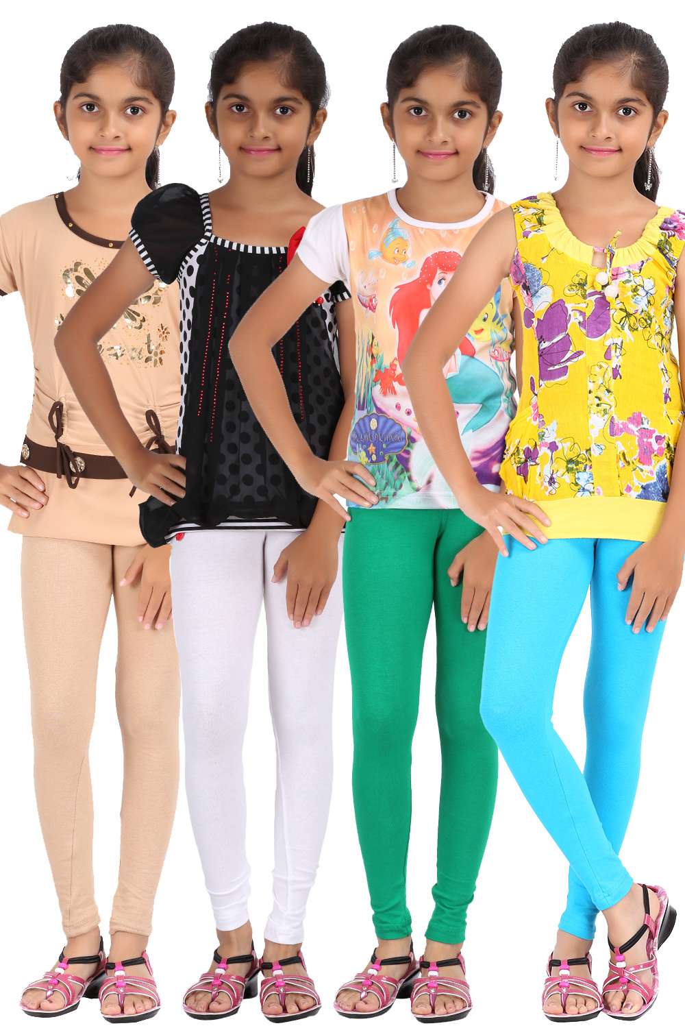 Be Style Girls Beige-White-Green-Blue Leggings Pack of 4