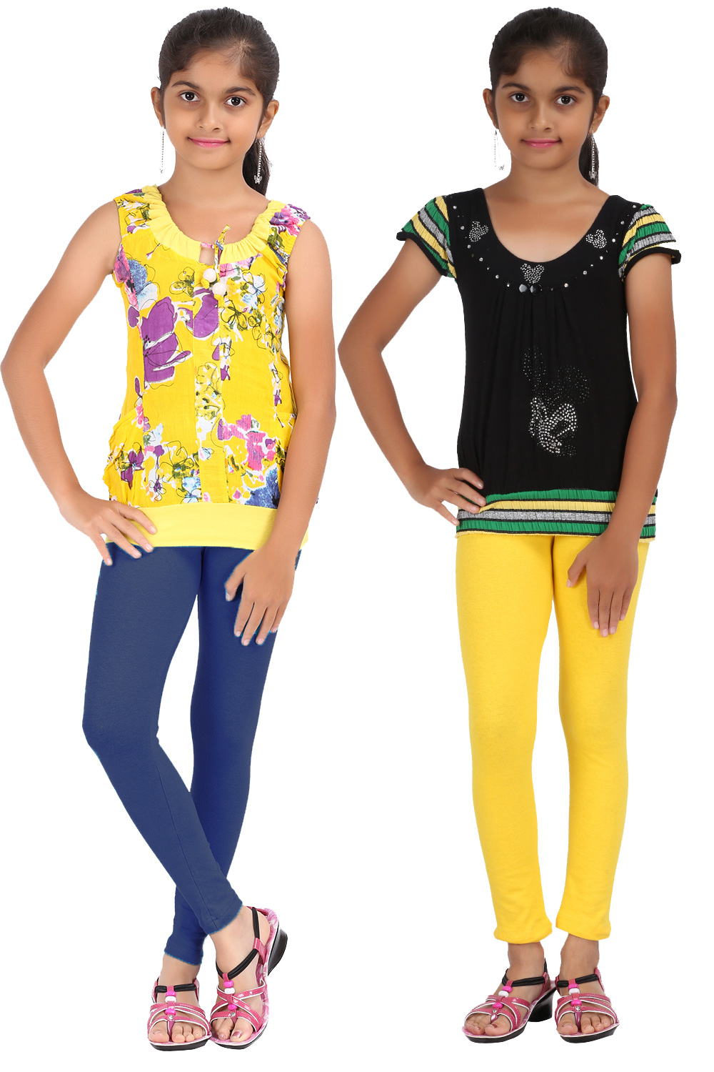 Be Style Girls D-Blue-Yellow Leggings Pack of 2