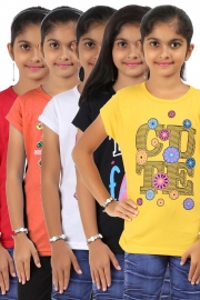 Be Style Printed Girls Round Neck Yellow-Green-Pink T-Shirts Pack of 3